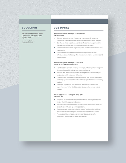 Fleet Maintenance Manager Resume Template Word Doc Apple Mac Pages Template Net . View Hundreds Of Vehicle Fleet Manager Resume Examples To Learn The Best Format, Verbs, And Fonts To Use.
