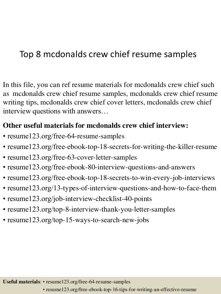 Mcdonalds Crew Member Resume Writing Guide 12 Examples 2020 . Getting A Job At 16.