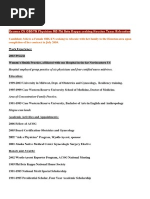 Resume Cv Obgyn Physician Seeking Dallas Or Houston Texas Group Pract , Duties Shown On Sample Resumes Of Ob/Gyn Nurses Include Treating Patients Who Receive Abnormal.