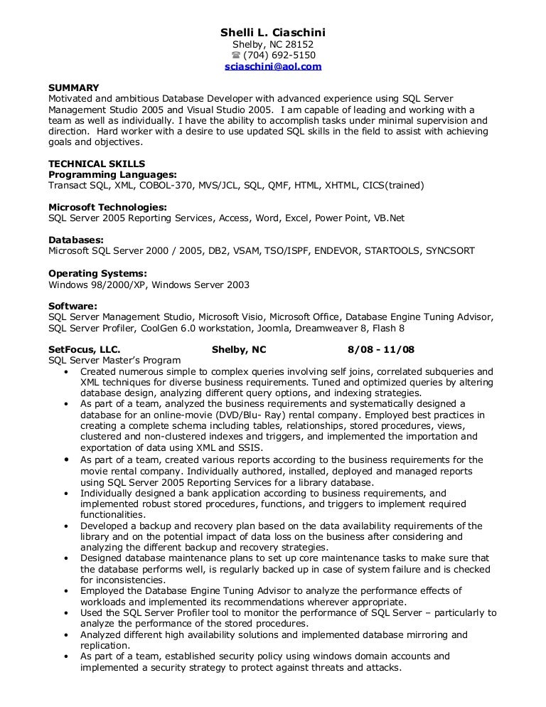 Sample Resume Of A Dba. Then start by reviewing your existing resume or by writing a new one that highlights all the relevant skills and achievements you've had in the last years. Download sample resume templates in pdf, word formats. An expert sql server developer resume should be specific to your profession, you can craft a ssis developer resume that highlights the skills below we've given a sample sql developer resume so that you can have a clear idea of how a correctly made and well written resume looks like. Let's write an sql developer resume that will get you working at full potential. Get a lot more interviews and. Use our sql developer resume sample & expert tips. Or at least for a lot of money. Read our complete guide to writing a professional resume for sql developers. Research and prototype new technologies as appropriate. List the right sql experience, with the best sql skills and achievements. An sql developer resume sample that gets jobs. Private bank engineering sql developer resume examples & samples. This pl / sql developer resume will get queried back to an interview. Sql developer resume samples and examples of curated bullet points for your resume to help you get an interview. Sql developer resume sample inspires you with ideas and examples of what do you put in the objective, skills, responsibilities and duties.